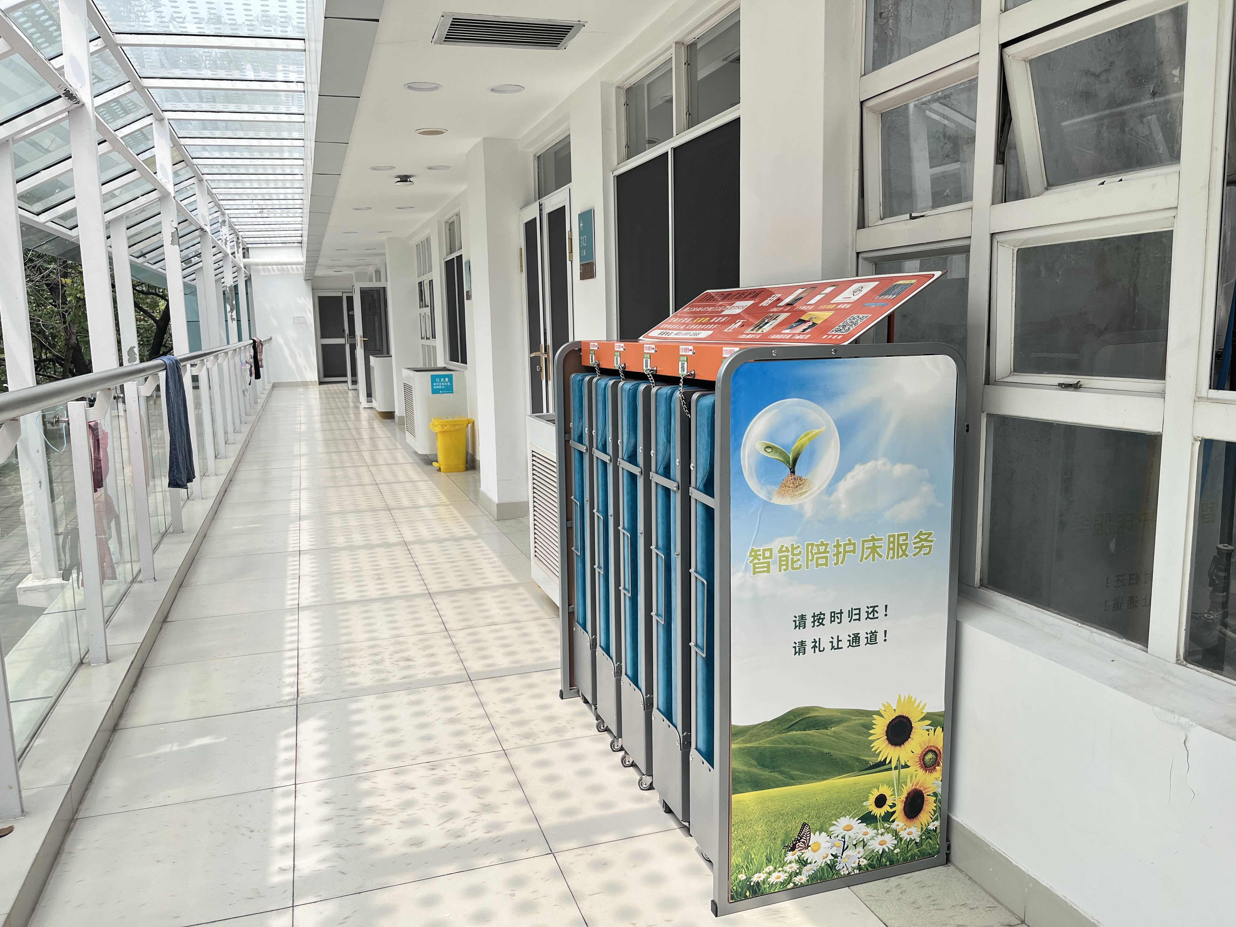 愛陪智能陪護床免費投放供入醫院(yuàn),配套擺放到病房,白天作為床頭櫃或座椅免費用,晚上掃(sǎo)碼付費開鎖(suǒ)鋪(pù)床,即(jí)在醫院審批的(de)開放時間及收費標準範圍內,限時定向開放給住院患者的陪護家屬掃碼付款使用;白天作為床(chuáng)頭櫃、座椅免費使用,且掃碼被禁用打不開床以保證病房通道(dào)順暢。